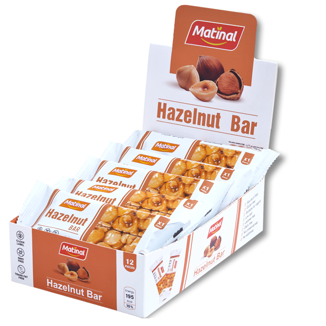 حلوى مقرمشة فاخرة تجمع بين حبات البندق المحمصة والكراميل الذهبي اللذيذ، مع لمسة من الفانيلا الطبيعية. تحتوي العلبة على 12 بار، يحتوي البار الواحد على (195) سعر حراري، ويبلغ وزنه (33) جرام. يبلغ وزن العلبة (430) جرام.