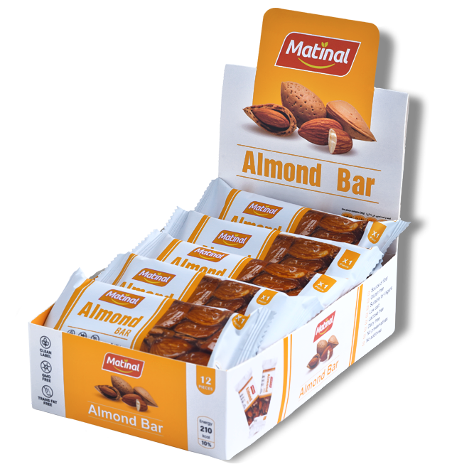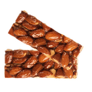حلوى مقرمشة فاخرة تجمع بين حبات اللوز المحمصة والكراميل الذهبي اللذيذ، مع لمسة من الفانيلا الطبيعية. تحتوي العلبة على 12 بار، يحتوي البار الواحد على (210) سعر حراري، ويبلغ وزنه (38) جرام. يبلغ وزن العلبة (480) جرام.