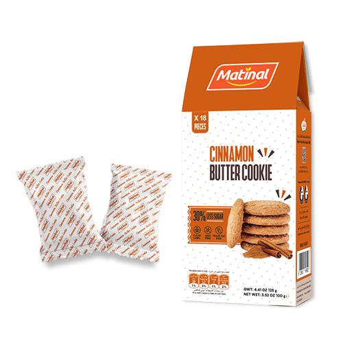 بسكويت مثالي هش وخفيف، محضر من أجود أنواع دقيق القمح الفاخر ممزوجًا بالزبدة الطبيعية، مع البيض الطازج والقرفة الشهية. تحتوي العلبة على (18) قطعة من البسكويت، يبلغ وزن القطعة الواحدة (6) جرام، وتحتوي على (28) سعر حراري، يبلغ وزن العلبة (125) جرام.