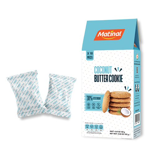بسكويت مثالي هش وخفيف، محضر من أجود أنواع دقيق القمح الفاخر ممزوجًا بالزبدة الطبيعية، مع البيض الطازج وجوز الهند اللذيذ. تحتوي العلبة على (18) قطعة من البسكويت، يبلغ وزن القطعة الواحدة (6) جرام، وتحتوي على (30) سعر حراري، يبلغ وزن العلبة (125) جرام.