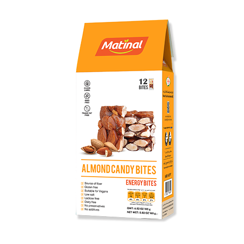 حلوى مقرمشة فاخرة تجمع بين حبات اللوز المحمصة والكراميل الذهبي اللذيذ، مع لمسة من الفانيلا الطبيعية. تحتوي العلبة على 12 قطعة، تحتوي القطعة الواحدة على (75) سعر حراري، ويبلغ وزنها (14) جرام. يبلغ وزن العلبة (185) جرام.
