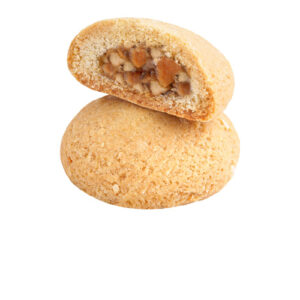كعك مُحضر من أجود أنواع الدقيق الفاخر ممزوجًا بالسمن الطبيعي، مع لمسة من السمسم الذهبي، محشو بالملبن الممزوج بالبندق المحمص، ويتميز بقوامه المتماسك ونكهته الغنية الفريدة. تحتوي العلبة على (20) قطعة من الكعك، يبلغ وزن القطعة الواحدة (21.5) جرام، وتحتوي على (105) سعر حراري. يبلغ وزن العلبة (500) جرام.